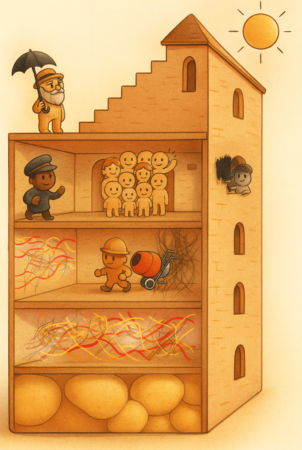 Tiene lógica, pero a medias. Ya que, en toda construcción, no alcanza con muros resistentes y habitantes en su interior, es preciso un sistema de “tuberías” internas que lo mantenga en funcionamiento.