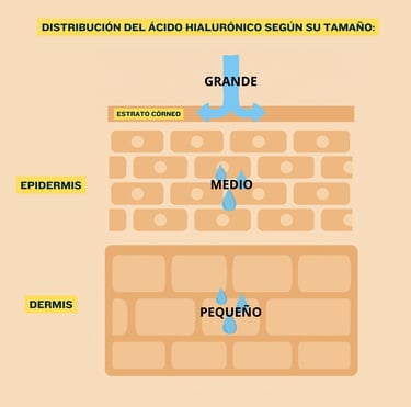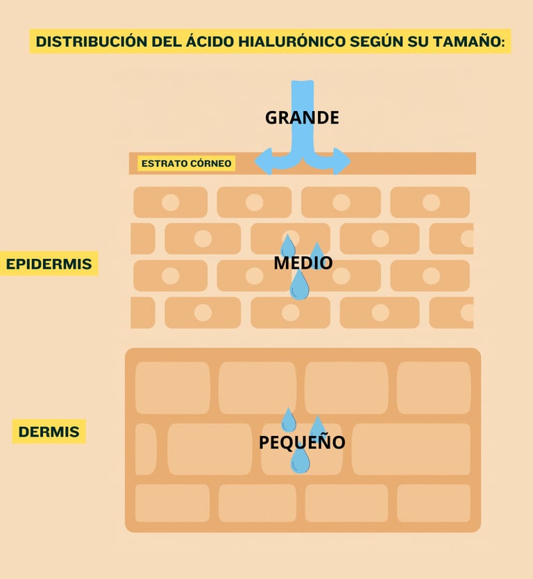 Dentro de la piel, el AH constituye la principal “reserva de agua”. En las capas profundas de la epidermis, los queratinocitos producen pequeñas cantidades que refuerzan la barrera cutánea. Más abajo, en la dermis, los fibroblastos fabrican la mayor proporción, siendo el verdadero depósito de este valioso compuesto.